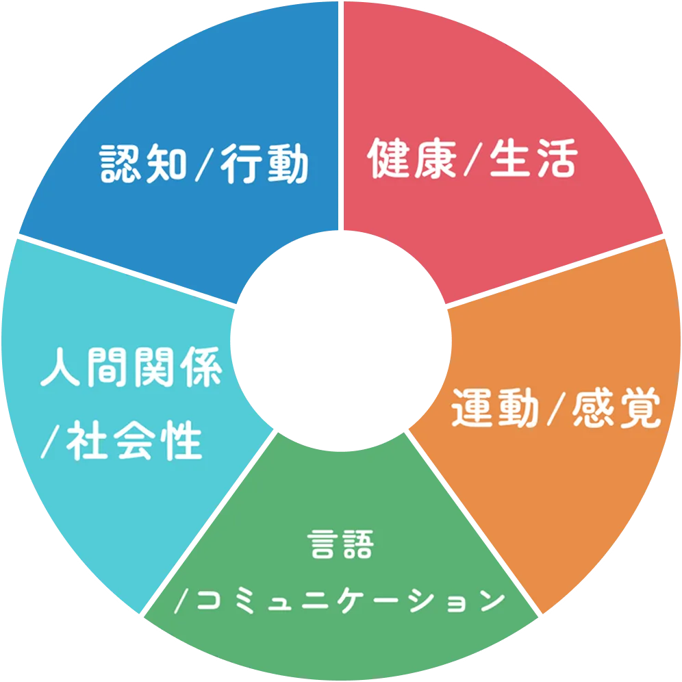 模倣や基礎学習・就学準備(集団での指示行動、書き取り、板書など)を通して、認知・行動の基盤を育む領域